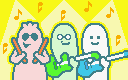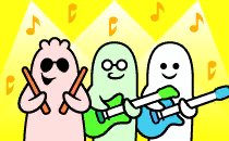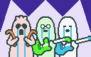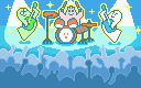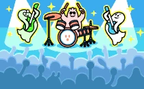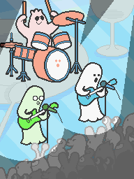 | These ghosts are rocking out at a late-night show. Bedtime's coming, though, so they have to keep the songs on the short side. |