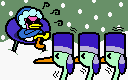 - Early!/Late!: The player pecks out of sync, causing less impressive hit sparks to fly out, a "doink" sound to be heard, and a sweat drop to form. While stretching, the player's neck gets a cramp. The captain gets angry and huffs.