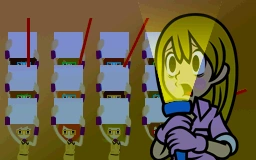- Miss...: The player's book tilts. If the player releases Ⓐ or Ⓑ while spinning, the book shows the wrong image. The player's girl blushes in embarrassment, and the other girls look at her.