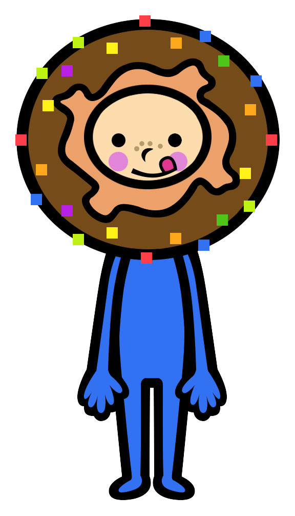 Donna is a woman with a donut hat over her head and what looks to be a blue bodysuit. She seems to be romantically attracted to donuts, making a distinction between "handsome" donuts and regular ones[1], which leaves people like Tibby bewildered[2]. She often makes donut-related puns[3].