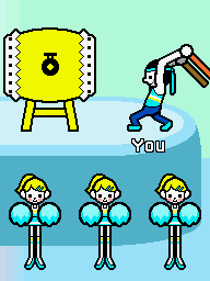- Perfect!/Ace!: Yellow stars emit from the drum. The cheerleaders wave around their pompoms in celebration at the end of the turn.