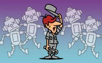 | This factory builds robots. (What did you expect?) It's your job to fuel 'em up once they're built. |