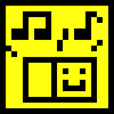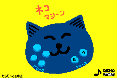 This machine is a cat-shaped toy with buttons on its face. It has speakers for ears, closed eyes, and a standard cat mouth. The background is yellow, with darker yellow text which says Neko Machine (ネコ マシーン?, Cat Machine).