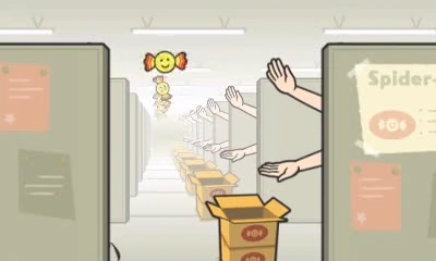 The player takes control of Employee 333-4-591032 who works in a candy factory. Beneath the player is a cardboard box. Using both hands, they must catch candy to drop them into the box and swat away the Treat Spiders thrown at them. When the cue "Double up!" (いくぜ!!!?, Ikuze!) is heard, the player must catch one piece of candy and smack two Treat Spiders in a row.