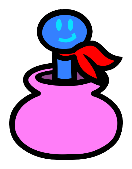 Rupert is a small microphone-shaped snake sitting in a pink pot. He wears a red scarf. He listens in on people with the intent to help them by bringing them news and occasionally gossip[1]. He enjoys meddling in people's business and is stated to dislike frogs. The shape of his lower body inside the jar is unknown, seemingly even to Rupert himself. He is able to stretch his torso to make himself taller. The player can obtain a Mascot of Rupert, which can replace the loading icon, by playing the Stable minigame. In Rhythm Tengoku: The Best+, Rupert sometimes ends his sentences with ッピ (-ppi?).