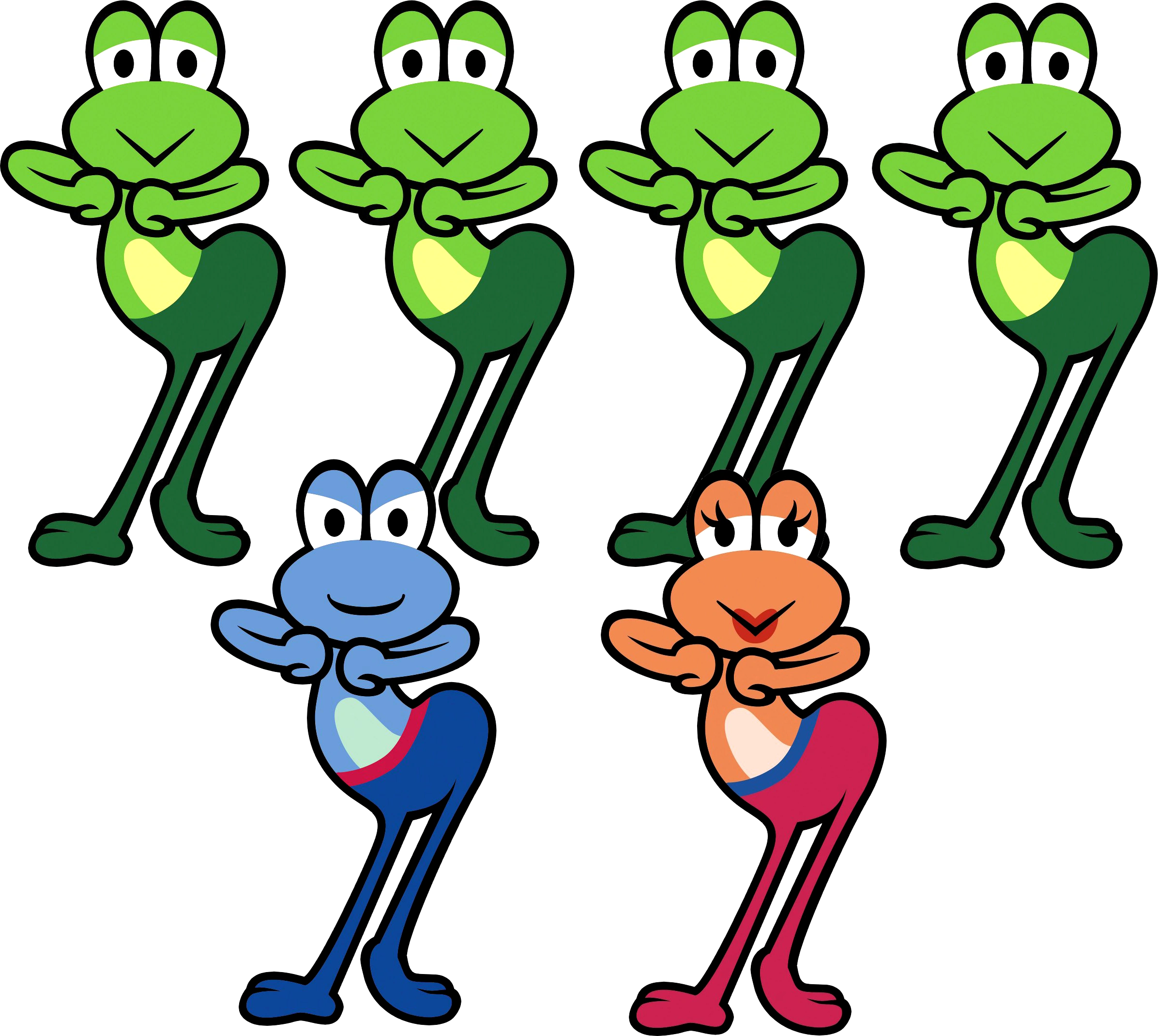 The Frogettes all shake their hips to dance. The Bandleader can sing and play the saxophone. Dancing, singing, and playing instruments is how the frog family makes its money[1]. As the Bandleader sings, the lady Dancer next to him gives instructions to the Backup Dancers who are the real focus of the performance.